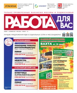 Т О Л Ь КО П Р О В Е Р Е Н НЫ Е В А К А Н С И И МО С К ВЫ И П О ДМО С КО В Ь Я ЧЕТВЕРГ I 9 ОКТЯБРЯ 2025 I №80 (3814) I RDW.RU I 12+ ЛУЧШИЕ ПРЕДЛОЖЕНИЯ РДВ В СОЦИАЛЬНЫХ СЕТЯХ И МЕССЕНДЖЕРАХ Занятость рядом с домом, различные графики, обучение с. 6, 9 Приглашаем ответственных и энергичных с. 3 Высокие зарплаты, расширенный соцпакет с. 3 1753221 1753713