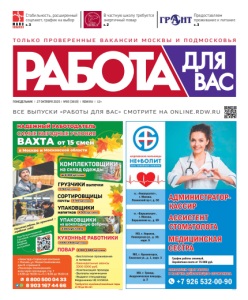Т О Л Ь КО П Р О В Е Р Е Н НЫ Е В А К А Н С И И МО С К ВЫ И П О ДМО С КО В Ь Я ПОНЕДЕЛЬНИК I 27 ОКТЯБРЯ 2025 I №85 (3819) I RDW.RU I 12+ ВСЕ ВЫПУСКИ «РАБОТЫ ДЛЯ ВАС» СМОТРИТЕ НА ONL INE . RDW. RU Стабильность, расширенный соцпакет, график на выбор с. 3 В частную школу требуется энергичный повар с. 2 Предоставляем проживание и питание с. 3 1754562 1754595